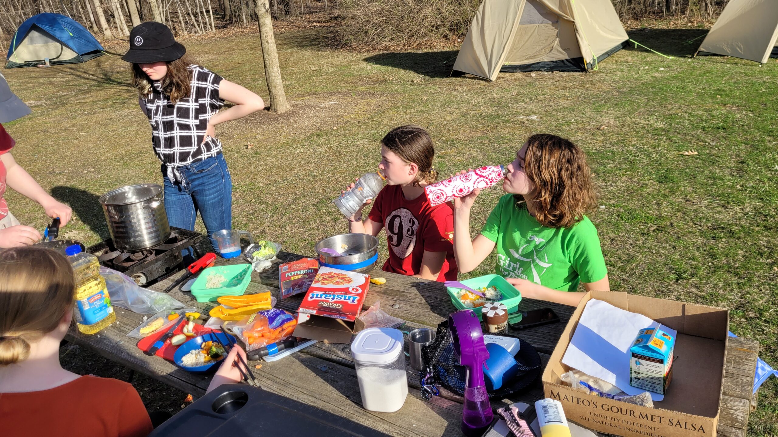 Our “iron chef” campout. Troop 456 builds skills in lashing, first aid, hiking and more on our outings. Some troop members have built leadership skills by attended and later staffing the National Youth Leadership Training program.